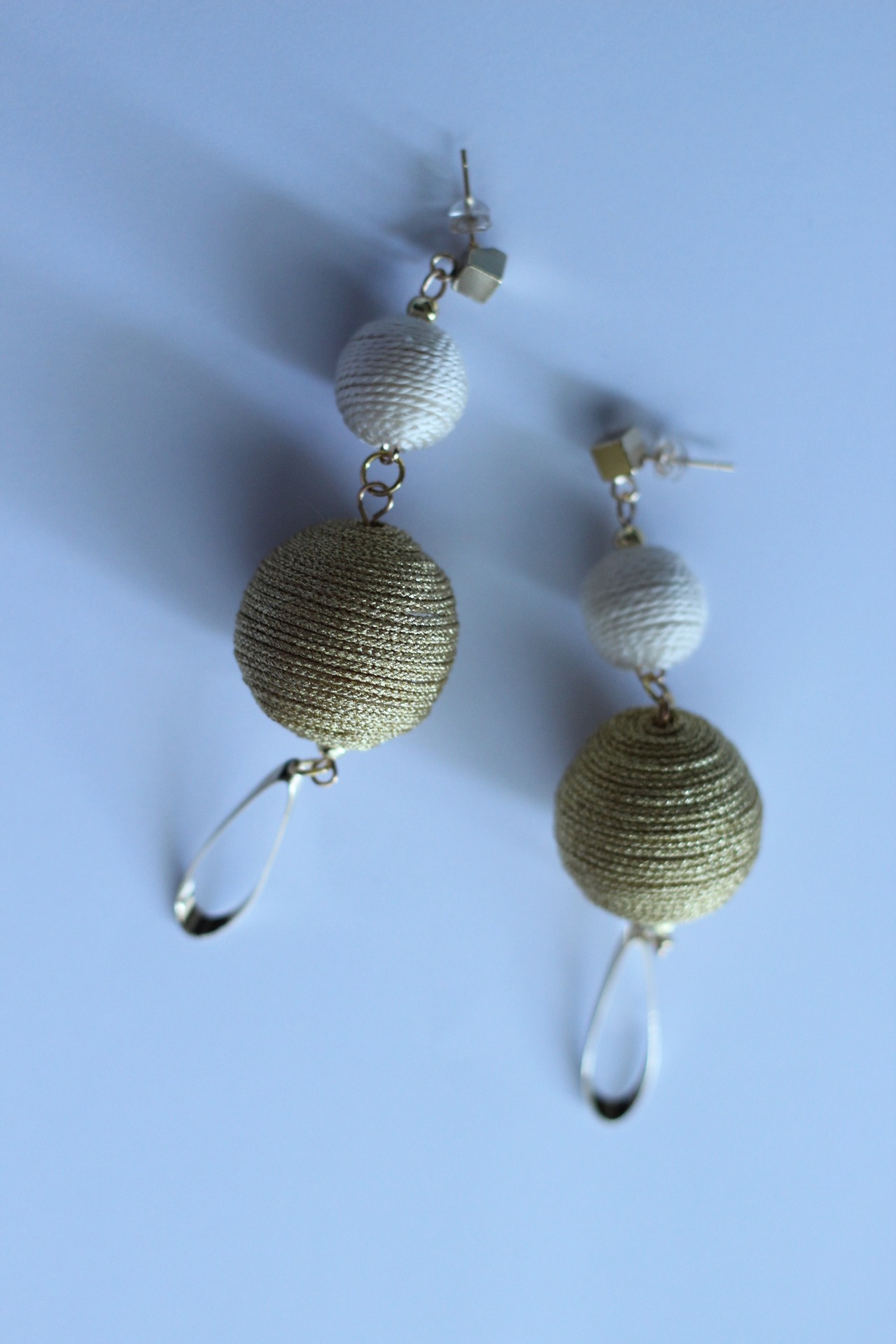 ボンボンピアス 25mm・20mmのボンボン 長さ100mm ピアス部分はGoldのサイコロ型